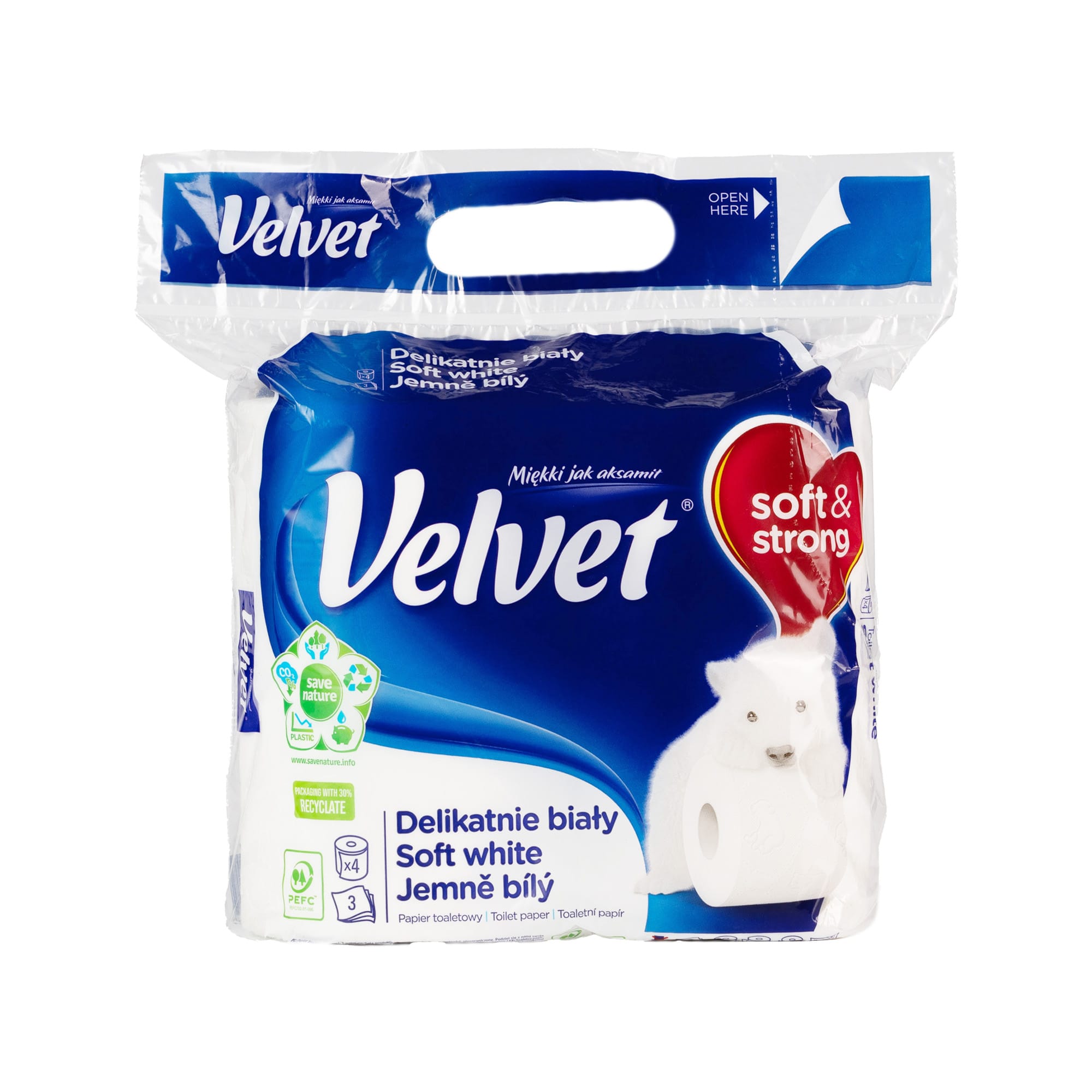 Velvet Туалетний папір Делікатний Білий, з ручкою 3 шари 4 рулони 150 відривів 18,3 метри