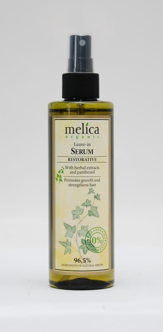Закріплююча сироватка Melica Organic з рослинними екстрактами та пантенолом, що не потребує змивання, 200 мл.